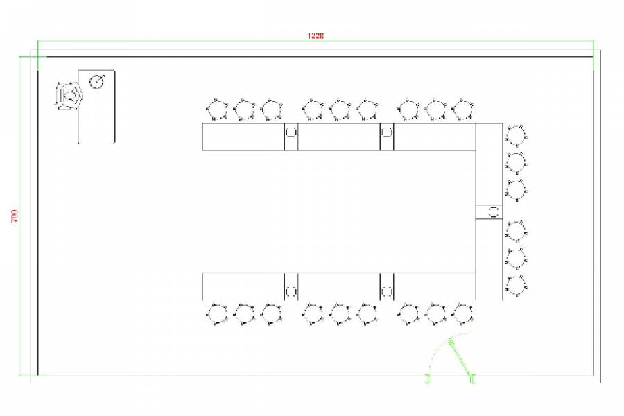 Bu yerleşim düzeninde masalar u düzeninde konumlandırılarak İki masa arasına bir adet öğrenci elektrik ve su ünitesi konumlandırılmaktadır.