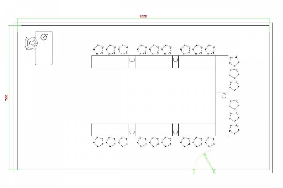 Bu yerleşim düzeninde masalar u düzeninde konumlandırılarak İki masa arasına bir adet öğrenci elektrik ve su ünitesi konumlandırılmaktadır.